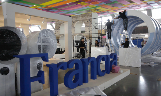 Justo en medio del Centro Expositor, con un total de 700 metros cuadrados, en el espacio destinado al país invitado se exhiben mamparas de información sobre aspectos relevantes de la historia de Francia, y apreciar los íconos arquitectónico, inventos e historias de la nación, así como su patrimonio y música. Sobresale en el pabellón la réplica de la Torre Eiffel, que con una altura de 12 metros invita a los visitantes a sorprenderse, emocionarse y tomarse una foto de recuerdo.