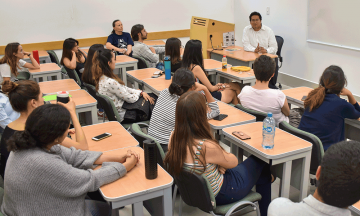El crítico e investigador en el campo del arte moderno y contemporáneo, y curador invitado de la última exposición de la Capilla del Arte, Erik Castillo, visitó el campus de la Universidad de las Américas Puebla como parte de un acercamiento con los estudiantes de Artes Plásticas e Historia del Arte y Curaduría. Gracias al trabajo colaborativo entre el curador Erik Castillo y la dirección de Espacios Culturales y Patrimonio Artístico de la Udlap, se realizó la revisión de portafolios con alumnos de Artes Plásticas y una charla denominada, El Quehacer Curatorial en la Actualidad con los alumnos de Historia del Arte y Curaduría. La intención de Erik Castillo de revisar portafolios con los estudiantes fue la de "retroalimentar sus ideas, estimular su sensibilidad, dar referencias y hacer algunas opiniones para generar nuevas ideas, contexto, conocimientos y ampliar sus horizontes". Asimismo, este ejercicio se trató de un encuentro informal, pero a la vez articulado "para poder transmitir conocimiento", comentó el curador. Erik Castillo cuenta con veinte años de labor como docente, ponente y conferencista en diversas instituciones públicas y privadas, y desde el año 2001, ha realizado curaduría para museos públicos, nacionales y estatales, y para espacios culturales diversos en México y en el extranjero. "Esta es una forma en la que puedo seguir haciendo mi labor, es algo mutuo porque en eso consiste mi trabajo, en la exploración de contenidos de imagen, de producción de imagen, arte y derivados", expresó referente a su participación con los estudiantes de la Udlap. Con respecto a la plática, el núcleo central fue la labor curatorial. Erik Castillo buscó transmitir su experiencia personal y compartir algunas ideas que son convencionales en el campo de la curaduría, que "no sólo son las que tienen que ver con mi experiencia, son conceptos, nociones y asuntos específicos que tienen relación con la práctica global de la curaduría, el origen de ésta, en qué contexto tiene lugar, en que nuevos ámbitos se ha desarrollado y cuáles son los aspectos más avanzados en materia de curaduría de las artes visuales, plásticas y concepto expandido", comentó. Respecto a su experiencia con la curaduría de la exposición Ver para Creer del artista poblano Antonio Álvarez Morán, Erik Castillo expresó: "para mí ha sido una experiencia de placer, lo que vi fue una organización precisa, pudimos intercambiar puntos de vista en el guion museográfico y el diálogo con Antonio fue muy bueno".