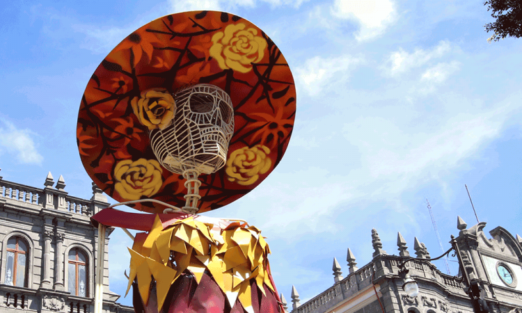Con unos versos del poema Muerte sin fin de José Gorostiza, la alcaldesa Claudia Rivera Vivanco y el director del IMACP, Miguel Ángel Andrade, dieron paso a la inauguración en el Zócalo de ciudad de la exposición Me lleva la huesuda, muestra que exhibe en el corazón de la ciudad más de 20 piezas en gran formato de figuras de calavera realizadas tanto por artistas con trayectoria como recién iniciados. En el marco de las actividades del Festival La Muerte es un Sueño que organiza el Instituto Municipal de Arte y Cultura de Puebla (IMACP) en colaboración con el gobierno del estado, la tarde de este martes la presidenta municipal, Claudia Rivera, dio el corte de listón a esta muestra realizada por el Colectivo Blue Monkey, que se suma a las casi 800 piezas de pequeño formato que se pueden visitar en la exposición homónima del Museo Regional INAH Puebla, que fue inaugurada el pasado fin de semana. Durante la inauguración, la alcaldesa reconoció el talento del Colectivo Blue Monkey y el de todos los artistas que se sumaron para que Puebla sea un patrimonio cultural para que el talento de los poblanos pueda traspasar fronteras y llegar a otros públicos. "Queremos apoyar en esta administración en todo momento a la cultura, para que sea una herramienta transversal, pero también nos permita ir llenando los espacios públicos y recuperándolos para el mejor disfrute de las familias poblanas". "Con la fiesta de la muerte, de la que no discrimina entre condición de piel, preferencias sexuales, género, entre nada. Todos somos y todos llevamos una calavera". Miguel Ángel Andrade, director del IMACP, dijo que Me lleva la huesuda tiene como emblema la calavera, una figura que representa en los mexicanos la posibilidad de alcanzar una nueva dimensión, pero sobretodo la capacidad de darle un sentido a la vida.