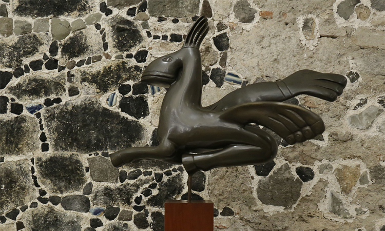 La irreverenciaEs el Hotel Casona de los Sapos donde por la calidez de su arquitectura y la armonía de sus espacios, alberga esta exposición catalogada como una de las mejores del maestro. Beatriz del Carmen Cuevas, quien fuera compañera y gran amor del artista los últimos 16 años de su vida, reconoció que el ojo de José Luis Cuevas logró penetrar más allá de las formas e inclusive de sí mismos, por lo que su arte carece de límite. "Un dibujo que alcanza sus justas dimensiones fuera del papel, fuera del trazo; en el instante en que despierta la sensibilidad de todo ser capaz de hacer suyo el contorno, hacer suyo el mensaje, reteniéndolos para siempre más que con la mirada, con el corazón." Las piezasEn las 26 piezas entre dibujos, grabados y esculturas que componen esta exposición, puede notarse el estilo único del artista que lo caracterizaba por su peculiar interpretación de la realidad que lo rodeaba. Destaca al centro la escultura Los amantes, una pieza de dos metros de altura por 1.20 de ancho; de acuerdo con la señora Beatriz del Carmen Cuevas, se trata precisamente del autor y su esposa, en un momento de interiorización de sus sentimientos. Una de las piezas más peculiares de la exposición es la titulada Los siameses, elaborada en bronce y con la que se inicia el recorrido. Beatriz del Carmen explicó que uno de los deseos de Cuevas fue que al morir sus cenizas fueran depositadas en esa pieza, por lo que representa un valor sentimental más allá de todo lo demás. "Esta pieza que se llama Los siameses, es muy emblemática, porque él decidió antes de morir que sus cenizas fueran depositadas aquí y que más adelante fueran entregadas a catedral." El acceso a la exposición no tiene costo y estará abierta al público en general hasta el 17 de agosto, en un horario de 10 a 20 horas de martes a domingo, en el Hotel Casona de los Sapos, ubicado en la calle 7 Oriente 408, en la Plazuela de los Sapos del Centro Histórico de la Ciudad de Puebla. |