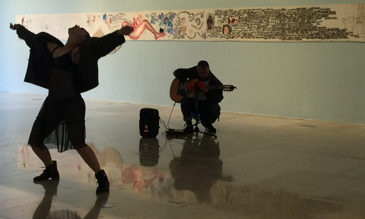 La piel es un tejido compuesto de fibras venosas, de tonalidades sanguíneas diversas, una vista de esa forma nos explica la sensibilidad de concluir la exposición temporal "Bordados" del artista Carlos Arias con un performance. Entre baile y guitarra el público se quedó sin voz y es que las emociones, eran trasmitidos gracias a la precisión del sonido de las cuerdas de la guitarra, que parecía fundirse en cada uno de los movimientos de la joven, cuando esta se encontraba con la música y se mezclaba con ella. Lee: Las leyendas son mirar la muerte, la vida y el amor: Gala CuentasueñosBordadosLa muestra llegó a su fin y no hubiera sucedido sin el artista Carlos Arias, en la que presentó sus piezas bordadas al estilo de Pahuatlán, un pueblo mágico del estado de Puebla, famoso por sus artesanías, y sus prendas de vestir, bordadas a mano. De entre las 17 piezas que se exhibieron en la exposición, donde pudimos observar una serie de bordados de animales y palabras, utilizando colores llamativos, resalta Jornadas, un bordado de 20 metros de longitud, que de acuerdo con el artista, lleva elaborándolo desde 1995. Ante esta pieza, explicó que en particular, está plasmada parte de una autobiografía, en la que muestra 20 sentencias o pasajes de su vida, una lista de sus muertos y otra más de los lugares que ha visitado a lo largo de su vida. El objetivo, fue el de mostrar mediante el arte contemporáneo, parte de su aprendizaje mismo, de modo que entiende que el público podrá identificarse con la obra. |