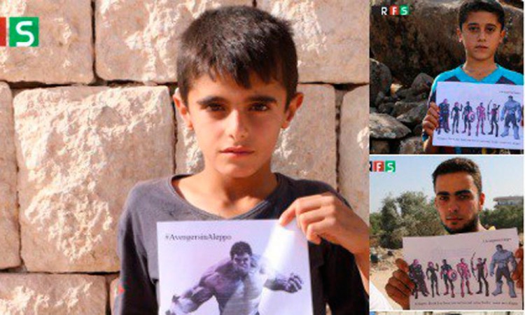 Miembros del grupo Fuerzas Revolucionarias de Siria lanzaron una campaña a través de las redes sociales empleando imágenes de los superhéroes de la película "The Avengers" (Los Vengadores) para denunciar las masacres en Aleppo. A través de un comunicado, la organización explicó que el objetivo de la campaña, bautizada como #AvengersInAleppo (Los Vengadores en Aleppo), es "enviar un mensaje desde Siria a todo el mundo de que su silencio y complacencia nos están matando y obligándonos a desplazarnos". El grupo ha difundido varias imágenes por Twitter y Facebook con fotomontajes en los que se ven escenas de calles destruidas por los bombardeos en la ciudad de Aleppo (norte), en las que aparece algún superhéroe como Thor, Hulk o el Capitán América. Otras fotografías muestran a sirios con dibujos de los superhéroes y con mensajes como "Vengadores, reúnanse, salven Aleppo". Las Fuerzas Revolucionarias de Siria señaló que pretenden enseñar el sufrimiento de los sirios en Aleppo y censuraron a la comunidad internacional por su "silencio" y "la pérdida de la humanidad" en el país árabe. Los activistas lamentaron que los sirios estén muriendo por las armas químicas, barriles de explosivos, cohetes y bombas sísmicas, entre otros, "mientras que el mundo solo mira". |