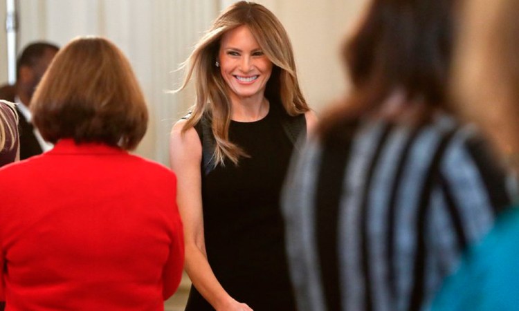 La invitación de Melania Trump a mujeres influyentes para un encuentro en la Casa Blanca iba más allá de la comida a servir, o del aparente motivo de conmemorar el Día Internacional de la Mujer. En cierto modo, fue una presentación en sociedad para la primera dama de Estados Unidos, siete semanas después de que comenzara el gobierno de Donald Trump. Tras pasar unas semanas en el ático de la familia en el centro de Manhattan mientras Trump iniciaba su mandato, la exmodelo, que según su marido es "una persona muy reservada", da sus primeros pasos en su nuevo y muy público papel. La señora Trump llegó al comedor oficial para su primer acto en solitario en la Casa Blanca, después de que un funcionario recitara: "Damas y caballeros, la primera dama de los Estados Unidos, Melania Trump", y fue recibida por un grupo de unas 50 mujeres entre las que había embajadoras, miembros del gabinete, al menos una senadora y su hijastra, Ivanka Trump. La primera dama pidió sugerencias a las asistentes sobre la mejor forma de dar poder a mujeres y niñas de todo el mundo, quizá adelantando el empoderamiento de las mujeres como un tema por el que podría hacer campaña. Trump dijo hace poco que a su esposa, que cumple 47 años el mes que viene, le preocupan las "dificultades de las mujeres". "Trabajaré con ustedes para asegurar que el género de nacimiento de alguien no determina el trato que recibe en sociedad", dijo a las invitadas, según un tuit de un empleado de la Casa Blanca. La Casa Blanca permitió que unos pocos periodistas observaran como invitados la llegada de la primera dama para la comida del miércoles, pero después fueron acompañados a la salida cuando la señora Trump comenzó a hablar. La oficina de prensa de la Casa Blanca prometió distribuir un texto de sus declaraciones preparadas tras el acto, pero la transcripción no se difundió. En las últimas semanas, la señora Trump ayudó a preparar el primer gran acto social en la residencia oficial, una cena anual de gala para los gobernadores del país. Al día siguiente viajó a Mount Vernon, la finca de George Washington en Virginia, donde fue recibida por las esposas de los gobernadores. La primera dama ha hecho otras apariciones discretas, por ejemplo en actos de firma de decretos de su esposo, y le acompañó al Capitolio para un discurso ante el Congreso. También llevó a sus homólogas de Japón e Israel a visitas culturales y no tardó en descubrir la carga que suponen el protocolo y el nuevo escrutinio al que está sujeta cuando fue criticada por no estar en la Casa Blanca para recibir a la esposa del primer ministro de Japón. En lugar, la señora Trump se reunió con el presidente, Shinzo Abe y su esposa, Akie, en la base Andrews de Maryland para tomar un vuelo en el Air Force One a Florida. Trump invitó a Abe a pasar un fin de semana en su propiedad en Palm Beach, Florida. Allí, Melania Trump llevó a Akie Abe a visitar un jardín japonés cercano. "Vemos su presencia física", dijo Jean Harris, profesora de ciencias políticas y estudios de mujeres en la Universidad de Scranton, en Pensilvania. Todas las primeras damas pasan por un periodo de adaptación en el que determinan cómo gestionar uno de los cargos más ingratos de la política estadounidense. A diferencia de muchas de sus predecesoras, que tenían experiencia en política por haber estado casadas con gobernadores o congresistas, la señora Trump está casada con un veterano empresario que nunca ejerció un cargo electo hasta ser elegido presidente. Una complicación para su estreno en el papel es la decisión de la pareja de que la primera dama siga viviendo en la Trump Tower hasta que su hijo de 10 años, Barron, termine el curso escolar. No se espera que se instale por completo en la Casa Blanca hasta dentro de varios meses, lo que deja a Trump en gran parte por su cuenta y sin una fuente tradicional de apoyo moral. La señora Trump también ha ido despacio a la hora de contratar al personal para el Ala Este de la Casa Blanca, donde está la oficina de la primera dama. Por ahora sólo ha nombrado a una secretaria social y una jefa de gabinete. El presidente ha dicho que no quiere llenar cientos de puestos vacantes en el gobierno porque son "innecesarios", una posición que podría incluir el Ala Este. Y la lentitud en la formación de su equipo podría complicar las operaciones. Es habitual que la Oficina de Visitantes de la Casa Blanca cierre de forma temporal durante un cambio de gobierno, ya que sus empleados son cargos políticos. Pero el cierre de este año fue más largo de lo habitual, frustrando a los congresistas responsables de distribuir en sus circunscripciones los boletos para las visitas públicas del edificio. Las visitas se reanudaron esta semana tras más de seis semanas de pausa. Las especulaciones sobre si los Trump mantendrían un evento anual de búsqueda de huevos de pascua en el Jardín Sur fueron creciendo hasta que esta semana se anunció que se celebrará el 17 de abril. La popularidad de la primera dama ha subido en 16 puntos porcentuales desde la investidura del 20 de enero, según sondeos recientes de CNN, pasando a un 52% desde un 36%. El público percibe a la señora Trump como una influencia apaciguadora y como a alguien que se ha entregado a su papel de madre, dijo Kate Andersen Brower, autora de "First Women". "En realidad es el polo opuesto a él", señaló, indicando que la primera dama apenas tuitea, a diferencia de los tuits diarios de su esposo. Tampoco apareció en público durante varias semanas después de la investidura, mientras que el presidente aparece ante las cámaras la mayoría de los días.