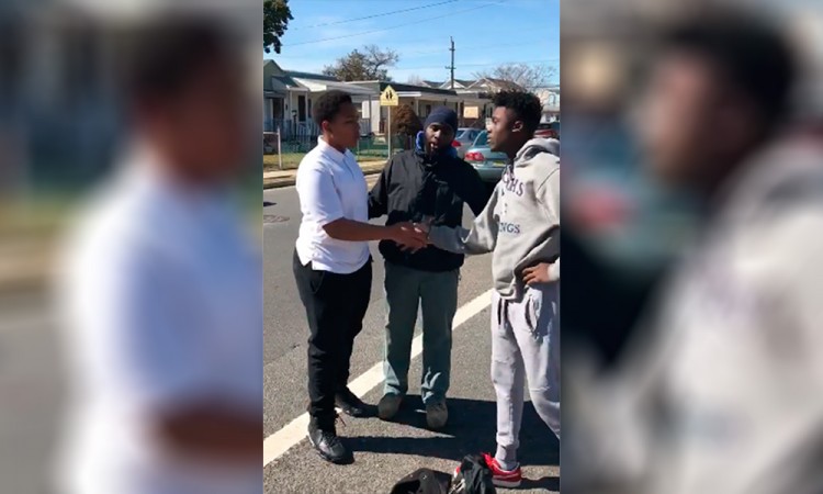 El video en el que se ve a un hombre detener una pelea entre dos adolescentes en Nueva Jersey, negándose a irse hasta que los jóvenes estrecharan las manos, ha sido visto millones de veces y ha generado elogios por su intervención. El video tiene más de 20 millones de reproducciones desde que se publicó el lunes en Facebook. El video comienza con una riña en Atlantic City entre dos jóvenes, mientras otros los graban con sus teléfonos. Entonces, Ibn Ali Miller interviene, se coloca entre los dos y les dice a los presentes que son unos cobardes por grabar la pelea. "Miren, se están riendo. Miren", dice Miller señalando a los demás. "Aquel tiene una enorme sonrisa. Se supone que es tu amigo". El extraño les dice a los adolescentes que "ya casi son hombres" y deben comenzar a actuar como tales. "Todos ustedes tienen padres. No hagan que sus padres se vean así", sentenció. Tras enterarse que los dos jóvenes en la riña no tenían idea de porque comenzaron a pelear, el hombre se negó a retirarse hasta que se estrecharan las manos. "Es grandioso que los jóvenes pongan atención así", dijo Miller a The Press of Atlantic City. "Eso no siempre sucede. Esos jóvenes me impresionaron". Miller dijo que estaba realizando un mandado para su madre, mientras estaba en descanso de una clase, cuando se encontró con la pelea. "Esa escena, sucede mucho en Atlantic City, y ellos son muy jóvenes", dijo Miller al periódico, al añadir que no es la primera pelea que detiene y posiblemente no será la última. "No despiertas pensando 'hoy voy a detener una pelea entre chicos', pero Dios hace su voluntad". El video generó un retuit del astro de los Cavaliers de Cleveland, LeBron James, quien felicitó al hombre "que intervino y le habló de frente a nuestra joven generación". "Para mí, el hecho de que LeBron y otros lo hayan visto, es algo bueno; estaría más emocionado si fuera yo más joven", reconoció Miller al periódico, al añadir que su familia no tiene redes sociales debido a toda la negatividad. "Pero quiero que las personas aprendan algo y lo apliquen. Eso es todo". |