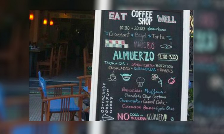 La embajada de México en Uruguay presentó una protesta formal ante la cancillería uruguaya, luego de que en redes sociales se desató una polémica por un cartel en un café-bar de Montevideo en el que se prohibía la entrada a perros y mexicanos. El escrito presentado por la sede diplomática mexicana denunció "la lamentable y deplorable actitud racista, discriminatoria y xenófoba ostentada por el café". "La embajada (de México) reprueba y rechaza terminantemente la exhibición sobre la vía pública de un cartel en el que se ofende y discrimina a los nacionales mexicanos", apuntó. Por lo que solicitó a la cancillería uruguaya "ser el conducto con las instancias a que haya lugar para que el mencionado negocio deje de fomentar de manera inmediata y definitiva actitudes denigrantes". Por su parte, la alcaldía de Montevideo inició un expediente sobre el caso a raíz de las denuncias recibidas. En tanto, el comercio fue notificado de que estaba violando una ley que prohíbe las conductas racistas y fue exhortado a que cese esa práctica, informó Fabiana Goyeneche, directora de Desarrollo Social de la alcaldía. Goyeneche indicó que cuando los inspectores municipales visitaron el local la leyenda ya había sido borrada del pizarrón; sin embargo, la Secretaría de Derechos Humanos y la Institución Nacional de Derechos Humanos de Uruguay ya están al tanto del caso y podrían tomar medidas. El bar emitió un comunicado señalando que todo había sido producto de una broma mal entendida, pues la cuestionada frase "No dogs or mexicans allowed (no se permiten perros ni mexicanos)" fue tomada de la película The hateful eight, de Quentin Tarantino, y que allí no se discrimina a nadie. "Entendemos que puede haber sido insultante de manera accidental, por lo que es necesario aclarar que nunca haríamos este tipo de declaración en serio", dijo. Coffee Shop se presenta en las redes sociales como un "bar americano moderno". La difusión de la imagen del pizarrón del bar a través de las redes sociales provocó una intensa polémica entre quienes defendían el cartel por decir que sólo se trataba de una referencia para cinéfilos y los que veían un contenido racista. |