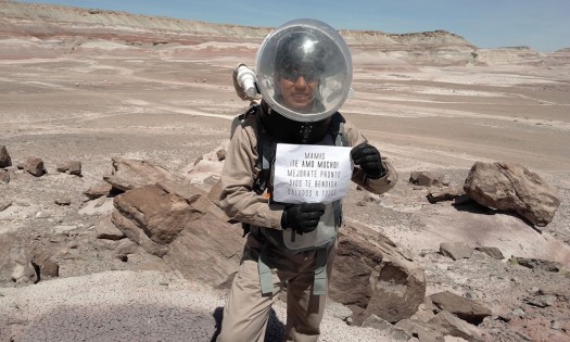 Yair Israel Piña, estudiante de la Universidad Nacional Autónoma de México (UNAM) y que forma parte de la tripulación 180 en la Estación de Investigación del desierto de Marte, envió saludos a su abuela por medio de Facebook. Piña mostró en la red social una imagen en la que porta un traje de astronauta y un cartel en las manos que dice "Mamis, ¡te amo mucho! Mejórate pronto. Dios te bendiga. Saludos a todos". En la publicación, el joven investigador pidió 10 mil "me gusta" a su imagen para que su abuela le enviara de vuelta un video. En 2015, Piña fue aceptado por la NASA para intervenir en el programa Orión. En la actualidad, forma parte de la misión que busca promover la exploración y el asentamiento del planeta Marte, la cual desarrolla sus actividades en el desierto de Utah, Estados Unidos. Con información de Milenio |