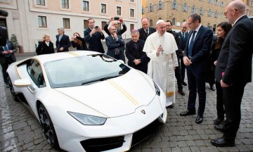 El papa Francisco recibió como regalo un Lamborghini Huracan con los colores de la bandera vaticana, con un valor de 200 mil dólares. El costoso regalo fue firmado por el papa afuera de su residencia en la Santa Sede y será subastado por Sotheby's. Lo recaudado se entregará al pontífice para ayudar a los necesitados. El Lamborghini fue entregado antes de la audiencia de los dirigentes de esta casa automovilística con el papa. El Vaticano dijo que el dinero se destinará a proyectos para ayudar a los cristianos para que regresen a reconstruir sus hogares en la Meseta de Nínive en Irak, que fueron destruidos por militantes del autodenominado Estado Islámico. También se ayudará a víctimas femeninas del tráfico humano y prostitución forzada y a dos grupos italianos que brindan servicios médicos en África central. Con información de Reuters |