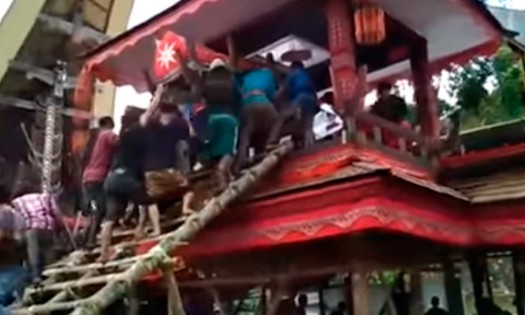 Un hombre de 40 años murió aplastado por el ataúd de su madre en las Islas de Sulawesi, Indonesia. El hecho ocurrió en un funeral cuando el sujeto y otra persona transportaba el féretro por una escalera de bambu . En la grabación se observa como el peso del grupo hizo que la estructura se derrumbara. El ahora occiso, Samen Kondorura recibió todo el impacto y horas después fue trasladado a un hospital donde falleció. Autoridades señalaron que la escalera no estaba debidamente reforzada, pero la familia se ha negado a presentar cargos. Con información de Milenio. |