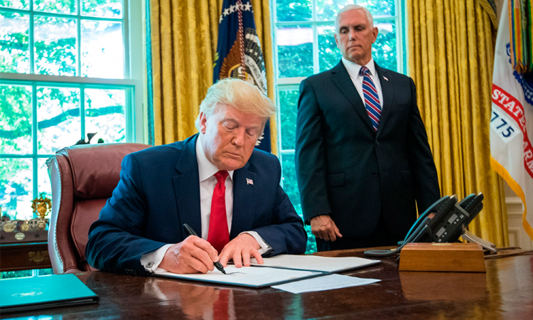 El presidente de Estados Unidos, Donald Trump, anunció ayer la imposición de sanciones financieras al líder supremo de Irán, Ali Jameneí, y a ocho comandantes iraníes, en plena escalada de la tensión en el golfo Pérsico. EU planea sancionar esta semana al ministro de Exteriores iraní, Mohamad Yavad Zarif, una figura clave en la negociación y el impulso al acuerdo nuclear de 2015, adelantó el secretario del Tesoro, Steven Mnuchin. En el Despacho Oval, Trump firmó un decreto para imponer sanciones que, prometió: "negarán al líder supremo, su oficina y a aquellos más cercanos a él el acceso a recursos financieros clave." Lee: Derribo de dron, sin intención: Trump"Esta medida responde a una serie de comportamientos agresivos del régimen iraní en las últimas semanas, incluido el derribo de un dron estadounidense" el pasado jueves.