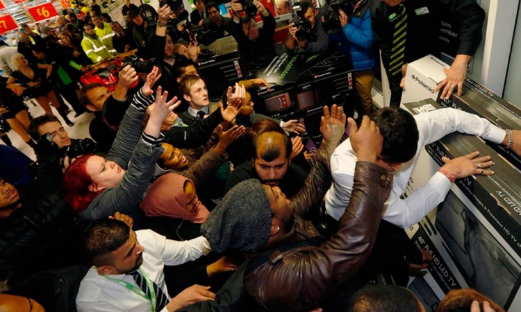 La primera pelea se desató en la madrugada del viernes, cuando recién se había inaugurado el Black Friday. Algunos jóvenes armaron una campal a las afueras de la tienda Forever 21, dentro del Lehigh Valley Mall, en Pennsylvania. Los policías tuvieron que intervenir para calmar la situación.