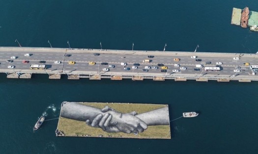 Tres enormes grafitis sobre hierba de manos que se entrelazan se han inaugurado este lunes en varios puntos de la ciudad de Estambul para simbolizar los vínculos entre Europa y Asia, y la solidaridad entre las personas. “¡Lo conseguimos! Hoy conectamos Europa y Asia. Hemos realizado tres frescos: uno en el lado europeo, uno directamente sobre el Bósforo en el Cuerno de oro y otro en el lado asiático”, señaló hoy el artista franco-suizo Saype en su Instagram. Se trata de frescos efímeros dibujados con productos biodegradables a base de tiza y carbón sobre césped en el lado europeo y asiático de la metrópolis estambulí. Otra de las obras se encuentra en una plataforma flotante en medio del estrecho del Bósforo que conecta ambos continentes. Con el nombre artístico de Saype, Guillaume Legros dibuja esas manos gigantes que se entrelazan para simbolizar la solidaridad entre personas, como parte del proyecto “Más allá de los muros”, iniciado en 2019 para trazar una cadena humana alrededor del mundo. “La cultura nos une en un momento en el que millones de personas están físicamente separadas (por la pandemia del coronavirus). Esta obra nos inspira y nos da esperanza en un momento de incertidumbre y ansiedad. No nos podemos quedar sin arte en los barrios”, señaló en una rueda de prensa Riza Akpolat, representante de comunicación del ayuntamiento de Estambul, en manos del partido socialdemócrata CHP.