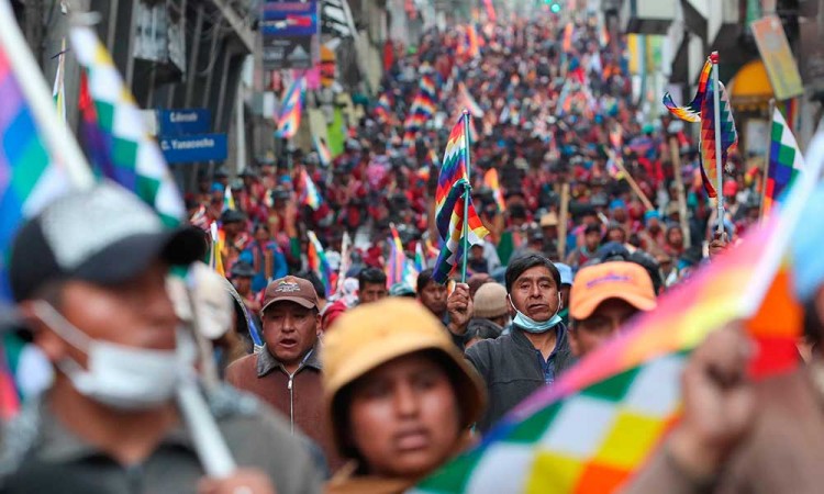 Campesinos e indígenas marcharon ayer jueves en la ciudad homónima, contra el gobierno de la presidenta interina de Bolivia