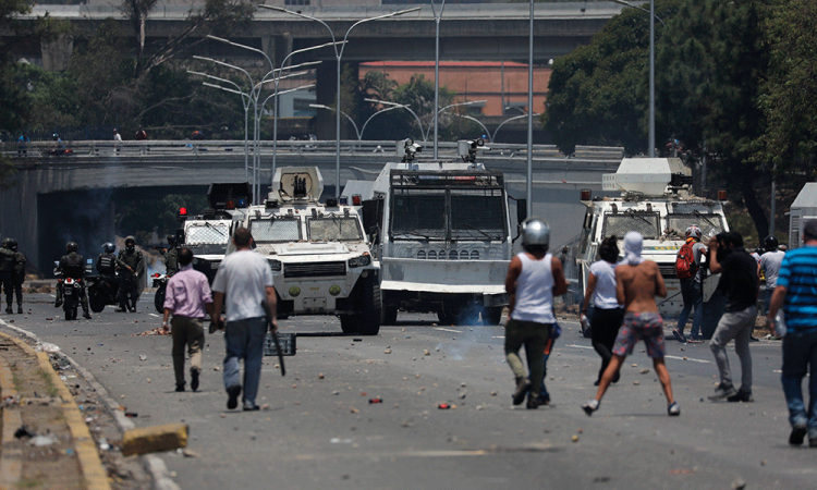 Centenares de venezolanos opositores a Maduro se han movilizado tras el llamado del jefe del Parlamento en Caracas.