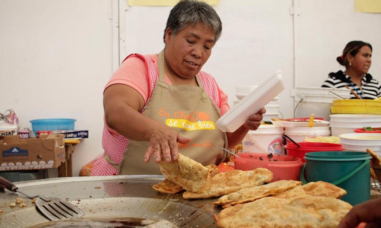 Más que una tradición es un estilo de vida la venta de molotes en San Pedro Cholula. Con recetas secretas para hacer la masa y los guisos, mujeres mayores quieren dejar su legado en la cocina de la región. Por más de 50 años Juanita ha vendido molotes, hechos con una receta de su propia creación y se ha convertido en un referente para el zócalo de San Pedro Cholula, pues ha pasado 30 años desde que usa su carreta como puesto en el primer cuadro de la ciudad. Este año, cada molote tendrá un costo de 20 a 25 pesos, los más elaborados y originales, como los preparados con camarón, carne asada, nopal y árabes tendrán un costo superior. La Feria del Molote permanecerá en el zócalo de San Pedro Cholula del 15 al 17 de julio y con un horario de 11 de la mañana a 11 de la noche, tiene entre sus participantes a los mismos ciudadanos de la región, que en su mayoría acuden a la vendimia cada año.