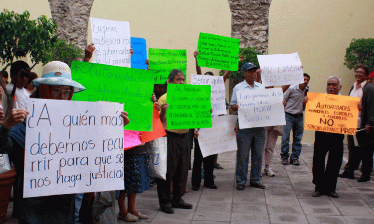 Los defraudados por Bampeco, asociación de ahorro, inversión y préstamo, exigen al gobierno del estado que no tarde en firmar el convenio de colaboración con la federación para utilizar el Fideicomiso de Pago (Fipago), ya que tres años después perder lo atesorado en dicha organización y atravesar por varios litigios, no han sido atendidos. En entrevista vía telefónica, Romualdo Ramírez Vaquero informó que el monto que se adjudicó Bampeco de los ciudadanos de Tehuacán asciende a 80 millones de pesos, que si bien se buscan resarcir, con base en la lucha jurídica, los afectados recibirían una parte de su dinero a través del Fipago. El representante de los afectados comentó que organizaciones de choque han invitado a este grupo de inconformes a generar manifestaciones para hacer presión, y aunque hasta ahora se han conducido con mesura y de manera legal, amagó con buscar con ese tipo de actividades la firma de convenio por parte del gobernador. Por lo anterior, Romualdo Ramírez también solicitó audiencia con el secretario general de gobierno, Diódoro Carrasco Altamirano, quien se ha negado a recibirlos o intervenir para atender la petición de los afectados. |