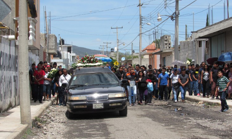 Familiares, amigos y estudiantes de la Benemérita Universidad Autónoma de Puebla (BUAP) del Complejo Regional Tehuacán, dieron el último adiós Érick Joaquín Ramírez Herrero, de 19 años, estudiante de Derecho asesinado hace días. Sus restos fueron encontrados el jueves debajo del Puente Tehuacán, entre los campos de futbol San Fernando y la caseta de peaje de San Lorenzo Teotipilco. Desde su domicilio, ubicado en la privada Cristóbal Colón del fraccionamiento Santa María, el féretro del joven fue acompañado para una misa de cuerpo presente en la parroquia de la colonia 3 de Mayo. Fotos: Yomara PachecoDurante la homilía, el sacerdote llamó a los padres de Érick Joaquín a conversar con Dios, para a través de la oración y expresar su dolor, indignación, rabia y coraje, y así obtener paz. "La injusticia humana, el miedo humano, la envidia humana, hicieron que Jesús sufriera aquel sacrificio tan doloso y espantoso, por lo que nuestro hermano Érick. Lo privaron de su vida y por eso nosotros tenemos que compartir, así como compartió los sufrimientos de Cristo, así también pedimos ahora que comparta la gloria de la vida eterna, resurrección y vida verdadera, donde ya no hay tristeza ni sufrimiento, sólo paz", indicó el párroco Asimismo, expresó que la partida del joven deja dolor y sufrimiento, por eso pidió a Dios que mande consuelo a todas las personas que los conocieron. "No es con nuestros odios, coraje o ira como vamos a cambiar o a transformar la sociedad, sino siendo conscientes de que cada uno tiene una labor importante, comenzando por nuestra propia población, alejando de nuestro corazón el mal, la corrupción, porque nosotros somos la solución del problema, que se está extendiendo y que nos va llevando a situaciones dolorosas, podemos revertir todo si cada uno de nosotros se compromete a alejarse del mal camino", dijo. El cotejo fúnebre partió al panteón de la junta auxiliar de Santa María Coapan, donde con rezos y acordes musicales de la estudiantina, los restos de Érick Joaquín fueron acompañados sepultados. |