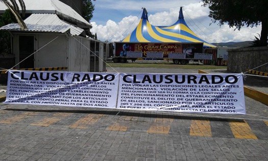 A decir del personal del circo, al lugar arribaron personas que sin mediar palabra, iniciaron la colocación de sellos, en los cuales se advierte que en caso de desacatarlos y presentar el espectáculo, o retirarlos, se incurrirá en un delito que sanciona el Código Penal del Estado de Puebla con hasta dos años de cárcel. Se mencionó que la empresa circense recurrirá a acciones jurídicas para presentar el espectáculo durante los 10 días que tenía programados, ya que ellos cumplieron con el pago de permisos, inicio de la publicidad y traslado del personal. En tanto, ciudadanos manifestaron que las autoridades actúan de manera arbitraria o, en todo caso, el Ayuntamiento debió realizar un sondeo para determinar qué quería la población. Niegan desacatoPor su parte, el director de Fomento Comercial y Abasto, José Roberto Rodríguez Clemente, manifestó que la clausura del evento no representa desacato a un mandato federal, toda vez que hasta el momento ellos no han recibido notificación del amparo ni se les ha exhibido por parte de la persona encargada.