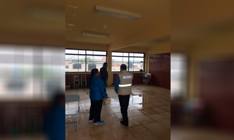 Al menos cuatro escuelas de San Martín Texmelucan presentan afectaciones por las lluvias de los últimos días, por ello Protección Civil municipal ya emitió dictámenes y recomendaciones para cada caso. El titular del área, Gabino Ramírez Cortés, señaló que desde la noche del lunes y mañana del martes hicieron recorridos por algunas escuelas para detectar daños y poner en alerta a profesores y padres de familia. Foto: Édgar Herrera El caso más grave hasta el momento es el de la escuela 18 de Marzo, en la cabecera municipal, que presenta tres salones afectados y se recomendó no utilizarlos hasta que sean reparados. Allí incluso se cuenta con un dictamen arquitectónico donde se recomienda evacuar, información que ya se brindó al director, quien -afirmó el funcionario- desestimó los datos. Abundó que como responsable de Protección Civil dio aviso a la Corde 18 y será esta instancia la que determine si se desalojan o no los salones. Otra escuela de la cabecera municipal con afectaciones es la "Eufrosina Ávila Camacho", que tiene salones con goteras. "Hicimos el dictamen y no hay daño estructural, pero se debe impermeabilizar bien", apuntó. Otras escuelas con problemas de filtración son la de Santa María Moyotzingo y la de San Juan Tuxco. |