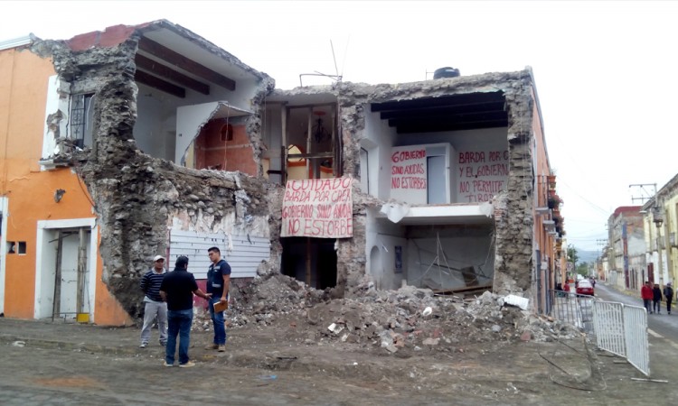 A dos semanas del sismo que azotó al centro de la República Mexicana el pasado 19 de septiembre, Atlixco mantiene sus daños estructurales en la ciudad, donde la inconformidad de la gente se manifiesta en paredes pintadas de advertencias por la lenta respuesta del gobierno, mientras que otros decidieron volver a su cotidianidad. En un recorrido realizado por El Popular, diario imparcial de Puebla, se observó que las afectaciones se mantienen dentro del Zócalo del llamado Pueblo Mágico, donde el característico Kiosco que sobresale de las plantas aún tiene estructuras metálicas que garantizan su estabilidad ante un derrumbe. Alrededor del Zócalo su característica Parroquia de Santa María de la Natividad permanece cerrada, pues han hay grandes grietas que recubren la fachada; sin embargo, en la calle de atrás, el exconvento del Carmen albergó daños mayores ocultos entre sus ventanas que permiten ver la falta de techos. Además el peso del museo, ubicado detrás de la edificación principal, ya que se convirtió en uno de los mayores atractivos para los locales, al ser la sede tanto de eventos culturales como su punto de reunión. Las calles circunvecinas cuentan con la desolación de los negocios cubiertos por las bandas de amarillas de precaución, convirtiéndose en un enorme palomar para las aves que tomaron las vigas de madera para observar el paso de transeúntes. Pese a que las principales avenidas del municipio siguen cerradas, junto con grafitis con la palabra "precaución", la gente mostró su inconformidad con leyendas en las que advierten: "Cuidado barda por caer. Gobierno, sino ayuda no estorbe", a lo que personal con chalecos azules se encargó de disfrazar con pintura. Al interior del mercado "Benito Juárez" ubicado sobre la avenida Independencia, todos los comerciantes de cecina y antojitos mexicanos no modificaron su rutina de trabajo, pues en sus estructuras no hay grietas. Afuera del mercado el escenario cambia, pues aún se mantienen cerradas sus avenidas, derivado a que los edificios y bancos están clausurados de forma temporal, por las grietas que dejó el movimiento telúrico; además, existen establecimientos que optaron por poner en venta sus propiedades. Por ejemplo, el local de "Funerales Puebla" aún con mercancía en su interior, colocó un cártel en el que ofrecen el inmueble en 1.5 millones de pesos; mientras que en otros se leen cartulinas en las que invitan a sus clientes a visitarlos en sus instalaciones. El Mapeo Colaborativo del Gobierno Federal detalló que entre el 19 al 26 de septiembre pasado, detectó en Atlixco que los principales daños se concentraron tanto en la ciudad como en su localidad de San Juan La Sabana, pues las acciones de las autoridades sólo cuentan con tres reportes en dichas zonas. Las cifras federales arrojaron que los principales reportes de daños que recibieron fueron los de grietas, fracturas en paredes, derrumbes parciales, bardas muy agrietadas a punto de caerse y fisuras que se abrieron en diversas estructuras en las avenidas Francisco Morales, Miguel Negrete y República de Colombia. |