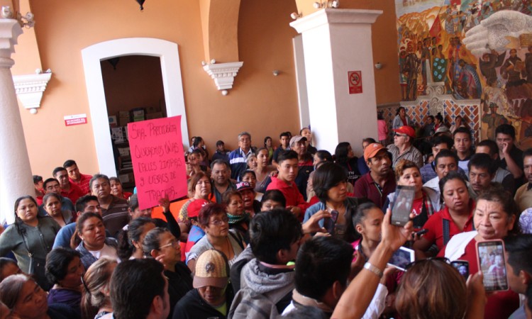 Comerciantes adheridos a diferentes organizaciones del Mercado 16 de Marzo y La Purísima, marcharon y se manifestaron en el Palacio Municipal, para solicitarle a las autoridades, el retiro inmediato de los vendedores ambulantes que se instalaron, el pasado fin de semana nuevamente en las vialidades, al no tener ningún acuerdo con funcionarios para reubicarse en mercado "Benito Juárez". La dirigente de la Unión de comerciantes fijos y semifijos del mercado la Purísima, adheridos a la CTM, Elvira Trujillo Bolaños, indicó que si las autoridades no retiran a los ambulantes de las calles del primer cuadro de la ciudad, ellos también van invadirán la vía pública para vender sus productos. Los más de 150 comerciantes que participaron en esta movilización señalaron que ellos en su momento fueron ambulantes, pero las administraciones locales pasadas los desalojaron o los reordenaron a los mercados antes situados e incluso al Amador Hernández. "Ese mercado lo hicieron para ellos (Benito Juárez), por eso ya no deberían estar en las calles", además no se permitirá que se haga una restructuración de lugares diferente al que está planteado en el plano original. Asimismo mencionó que si los ambulantes continúan en el primer cuadro de la ciudad, los locatarios de los mercados 16 de Marzo y La Purísima suspenderán los pagos por concepto de uso de suelo, baños y recolección de basura, que efectúan. Por su parte el dirigente de la Unión Libre Regional del Comerciantes Ambulantes A. C., German Mateos Ramos, reconoció que existen ambulantes que tienen permisos por parte del Ayuntamiento desde hace 40 años, entre los que encuentran tamaleros, taqueros, vendedores de esquites, jugos y churros, por lo que estos si se les debe respetar su estancia en el primer cuadro de la ciudad, porque incluso tienen horarios de labor. Detalló que en el caso de que comercializan tamales y jugos, su horario es de 6:00 a 10:30 horas, mientras que los demás vendedores sobre todo de comida su horario es a partir de las 18:00 horas. Ambos líderes manifestaron que si en 14 días no se tienen ya las calles del centro limpias de ambulantes, procederán a colocarse en las calles Agustín A. Cacho, 5Sur y 3 oriente, porque ya llevan muchos años tolerando la competencia desleal, por lo que fue entregado un escrito con sus señalamientos y se reunieron con el Regidor de Industria y Comercio, Jesús Hernández Martínez, así como con el Síndico Municipal, Miguel Ángel Romero Calderón. Incumplen autoridades con mesa de diálogoPor otra parte comerciantes ambulantes llegaron también al Palacio, para continuar la mesa de diálogo que tenían con la mayoría de integrantes del cuerpo edilicio, sin embargo después de dos horas de esperar, se les informó que no todos los regidores estaban enterados de que sostendrían una reunión con ellos. La líder del grupo de vendedores informales, Guadalupe Tecua Temaxtle, indicó que pese a que el pasado viernes se acordó que a la 12:00 horas del lunes se tendría una reunión con las autoridades para seguir desahogando el pliego petitorio, ya que solo se abordaron 2 de 8 puntos, los integrantes del cabildo no acudieron. Ante esta situación menciono que este martes entregarán por escrito, un oficio en donde estarán nuevamente solicitando una audiencia con los mismos regidores que estuvieron en la pasada reunión de trabajo. Tecua Temaxtla, expresó que el compromiso que hicieron con las autoridades, fue que el fin de semana estarían vendiendo en la calle segunda de Agustín A. Cacho, ya que tenían que vender para poder llevar un sustento a sus familias y este lunes no se colocarían hasta que se determinará algo en la reunión. Sin embargo dijo que debido a que no hubo reunión y tampoco tienen un lugar de venta, como una forma de que no quieren problemas o confrontaciones, a partir de este martes venderán en las calles aledañas al mercado 16 de Marzo, respetando la Segunda de Agustín A. Cacho tal como lo quiere la Comuna. Finalmente aseguraron que la manifestación que se registró en contra de ellas, fue porque es orquestada por el Regidor de Industria y Comercio, Jesús Hernández Martínez, quien ocupa a los comerciantes de los mercados como su grupo de choque y lo que quiere es que se dé un enfrentamiento.