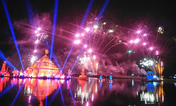 Con más de 6 mil asistentes se llevó a cabo la edición número 21 del festival Luz y vida, así como la Ofrenda de las mil luces, atractivos turísticos tradicionales del Pueblo Mágico de Chignahuapan para la celebración del día de muertos evocando ritos y creencias ancestrales del viaje de las almas a través del Mictlán. Desde hace poco más de dos décadas el Pueblo Mágico inicia la celebración de Fieles Difuntos con la exposición de un tapete de aserrín multicolor en el centro histórico, además de colocar la Ofrenda de las mil luces, con cientos de veladoras encendidas y los elementos tradicionales en un altar, donde el humo crea una atmósfera mágica y espiritual. Foto: Mario Reyna Fotos: Mario Reyna Miles de asistentes marcharon desde el Zócalo de la ciudad hasta la laguna, iluminando la noche con antorchas en un juego de luces que por momentos parecía un verdadero tránsito de las almas hacia el lugar de los muertos. Pequeñas luminarias colocadas al costado de la calle servían como preámbulo para marcar la ruta del festival Luz y Vida. Al centro de la laguna una pirámide de colores dio la bienvenida a los asistentes, con lanchas aluden el viaje de las almas al lugar de los muertos, las danzas, el vestuario, la narración de la historia de este viaje del alma, las luces, los silencios y la música crearon una atmósfera que fascinó a los asistentes. Foto: Mario Reyna Para finalizar, un espectáculo de fuegos pirotécnicos arrancó los aplausos, este espectáculo es el preámbulo de la feria de la esfera y del árbol que inicia este fin de semana, en su edición 22. .jpg) Foto: Mario Reyna