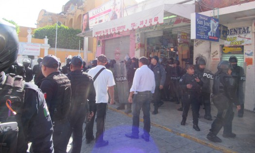 Tehuacán.- Un nuevo desalojo de comerciantes semifijos de las calles del primer cuadro de la ciudad de Tehuacán por el operativo Cero Tolerancia, generó un enfrentamiento que dejó más de 20 comerciantes detenidos y de varios heridos, entre ellos dos policías, así como un par de patrullas dañadas. Los hechos ocurrieron el lunes alrededor de las 9:30 horas en la calle Segunda de Agustí A Cacho, cuando un vendedor de jugos intentó colocarse sobre la banqueta, pero fue notificado por los alineadores que se debía retirar, a lo cual se negó y fue auxiliado por alrededor de 30 compañeros de su gremio y otros vendedores de esquites. Esta situación suscitó agresiones verbales hacia el personal de Fomento Comercial y elementos de Seguridad Pública, a la postre, se generó una batalla campal en donde los comerciantes sacaron bates de beisbol, palos y tabiques, en tanto, los uniformados repelieron la agresión replegándose con su equipo antimotines y respondieron con bastones. Fueron más de 15 minutos lo que duró el enfrentamiento en la calle Segunda de Agustín A Cacho y 1 Oriente, incluso algunos de los comerciantes fueron sacados de un negocio cercano, luego de que se refugiaran ahí tras lanzar piedras a las patrullas y a los policías. Hasta el sitio de la confrontación llegaron unidades oficiales para llevarse a los detenidos, entre ellos varias mujeres e incluso la líder del gremio, quien se cayó de la unidad oficial cuando emprendía su marcha, por lo que nuevamente fue subida al vehículo. Todos los asegurados fueron trasladados a los separos de Seguridad Pública Municipal, lugar que fue resguardado por policías y se evitó el acceso. Pese a que varios de los detenidos presentaban lesiones de consideración, no se les permitió atención médica inmediata. Ante esta situación, se pidió la intervención de la Comisión de Derechos Humanos Estatal, la cual arribó para tomar conocimiento de los hechos. Ante la agresión, los comerciantes exigieron la destitución inmediata del nuevo director de Fomento Comercial, Alberto García Hernández; mientras que hasta el cierre de esta edición, los familiares de los detenidos seguían sin tener contacto con ellos. Además se informó que se les iba a fincar responsabilidades legales ante los acontecimientos suscitados, por lo que se pondrían a disposición. El director de Seguridad Pública, Marco Antonio López Alfaro, manifestó que varios policías resultaron lesionados durante la regiega; sin embargo, pese a esta situación se continuará con el operativo policiaco para dar cumplimiento a la orden de no permitir la colocación de ambulantes o mercancía en las calles del primer y segundo cuadro de la ciudad.