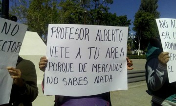 Integrantes de la Unión de Comerciantes Fijos y Semifijos del mercado La Purísima, en Tehuacán, adheridos a la Confederación de Trabajadores Mexicanos (CTM) se manifestaron en el Palacio Municipal para exigir la destitución del director de Fomento Comercial, Alberto García Hernández, así como del nuevo administrador del zoco. La principal acusación fue que venden espacios y en respuesta el titular señaló que la dirigente de esta organización, realiza este tipo de acciones porque busca "someter a sus caprichos" al personal del departamento local. La líder del gremio, Elvira Trujillo Bolaños, indicó que desde que llegó el director de Fomento al cargo, se han registrado varias anomalías, incluso situaciones de corrupción y falta de resultados en perjuicio de los comerciantes, por ello le piden a la alcaldesa Ernestina Fernández Méndez el cese de dicho servidor. Entre otras inconformidades se mencionó el incremento en el cobro del servicio de sanitarios en La Purísima, que pasó de 3 a 5 pesos, lo cual consideran es excesivo, ello ha ocasionado que incluso algunos hagan sus necesidades en lugares inapropiados. Puntualizó que exigencias como vigilancia, iluminación y limpieza, las han expresado al director y administrador, Cristian Gálvez Osorio, pero no han sido escuchados, además no hay continuidad en los trabajos en beneficio de la plaza, debido a que al momento han nombrado 10 administradores. Agregó que aparte de la movilización, sus agremiados -más de 200- han determinado suspender los pagos por el uso de los espacios en el mercado, que van de 5 a 80 pesos, hasta que obtengan respuesta. |