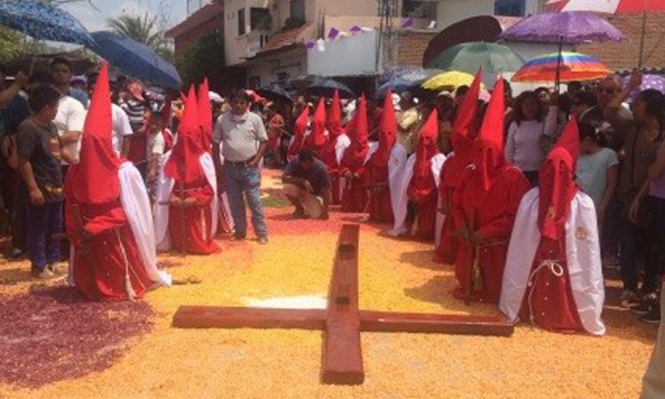 Cientos de feligreses participaron en el Viacrucis en Izúcar de Matamoros, a pesar de se realizó a pesar de los daños en las iglesias tras el sismo del 19 de septiembre del año pasado. Los feligreses desde muy temprano acudieron al Templo del Señor del Calvario, donde se dio inicioa la procesión del Viacrucis, aunque por cuarta ocasión se realizaron con las imágenes de la Iglesia del Señor del Calvario y de la Parroquia de Santiago Apóstol. En la Pasión y Muerte de Cristo va un grupo de engrilladosllevan amarrada una cadena a sus tobillos y la van arrastrando en un recorrido que dura más de cinco horas. Uno de los engrillados refirió que la capucha que usan es para guardar el anonimato, pues sólo ellos saben qué los motiva a cargar una cruz de más de 90 kilos. Mencionó que para esta actividad se preparó desde meses antes con caminatas y ejercicio de resistencia. También hubo fieles católicos que llevaron su cruz a cuestas, con el propósito de que sus pecados sean perdonados, otros más experimentando lo que vivió Cristo. Las mujeres se encargaron de llevar a cuestas la imagen de María La Dolorosa y mencionaron que de acuerdo a las historias, la imagen pesa según los pecados cometidos. Nancy N platicó que tiene cinco años cargando a la virgen y cada uno ha sido diferente su peso. El párroco Gilberto Sombrerero Hernández comentó que esta fecha todos los ciudadanos deben vivir como familia e invitó para que los feligreses acudan a las diferentes actividades que tiene organizada la Iglesia. Destacó que esta representación congrega a miles de fieles católicos, principalmente de las coloniasel Calvario Primera y Segunda Sección, del Empleado, de Lomas de Alchichica, de Lomas de Guadalupe, de Cruz Verde, de La Paz, de Vista Hermosa y de parte del centro. |