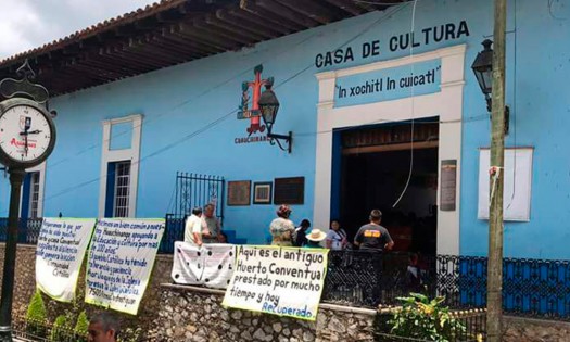 Niños inscritos a los Cursos de Verano Mi Biblioteca en la Casa de la Cultura de Huauchinango, cuyo edificio está a resguardo de la Secretaría de Gobernación, toman clases en el patio de la alcaldía. Esto fue dado a conocer de manera extraoficial por el área de Comunicación Social del Ayuntamiento, la cual adelantó que no hay ningún acuerdo luego de que el viernes 13 se habrían realizado una reunión entre el alcalde Gabriel Alvarado Lorenzo, el párroco de Huauchinango y autoridades estatales de la dependencia. El domingo 24 de junio el párroco Gustavo Corona, usando la urna que contiene la imagen de Jesucristo en Su Santo Entierro, cargada por una docena de feligreses, entró al recinto federal y se fortificaron dentro. Desde entonces las autoridades municipales iniciaron el trámite de queja, desalojo y recuperación del edificio, lo que sucedió una semana después, el 30 de junio. Los invasores fueron sacados y cerradas las puertas con sellos oficiales en las cerraduras. Las puertas se encuentran en estas condiciones y la gente ha señalado que la molestia colectiva sigue aumentado.
