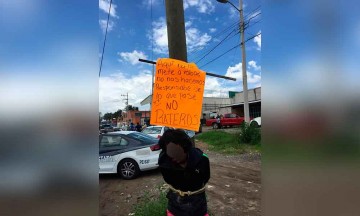 Habitantes de Covadonga, en la junta auxiliar de San Jerónimo Caleras capturaron a un ladrón dedicado al robo a casa habitación, al cual le propinaron una golpiza y después lo amarraron a un poste. El hombre de aproximadamente 35 años, fue detenido minutos antes de las dos de la tarde por los pobladores. Según los reportes extraoficiales, lo habrían sorprendido cuando intentaba robar en el interior de una de las casas del lugar. Es por ello que al ser capturado lo golpearon, después lo amarraron a un poste de telefonía y encima le colocaron una cartulina con el siguiente mensaje: "Aquí nadie se mete a robar, no nos hacemos responsables de lo que pase. NO RATEROS". Policías del estado y del municipio acudieron a atender el reporte de emergencia, pero en el lugar las personas no quisieron proceder legalmente, por lo que el hombre únicamente sería remitido al Juzgado Calificador. |
