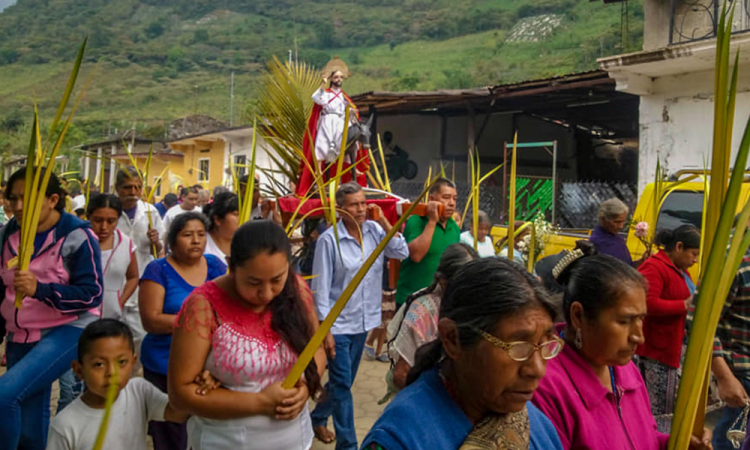 | Entre palmas tejidas, cánticos religiosos, humo y solemnidad religiosa se llevó a cabo la celebración del Domingo de Ramos en la junta auxiliar de Nanacatlán, en este municipio, a 13 días de la reapertura del palacio municipal auxiliar. Esta, una de las fiestas católicas más importantes, por ser el inicio de las celebraciones litúrgicas con motivo de la Semana Santa, periodo en que se conmemora la pasión y muerte de Cristo, en esta comunidad totonaca que se valió de una representación de yeso en la que se vea al Maestro Jesús montando el simbólico burro, este año vistiendo una capa roja y una túnica blanca. Ancianos, jóvenes y niños, usando las tradicionales palmas tejidas y adornadas con flores, iban acompañando al sacerdote local en los cantos y rezos propios de este rito. Los lugareños le llaman el padre José Luis. Lee: Venden palmas entre 5 y 80 pesosCuatro hombres de la comunidad cargaban a la imagen durante ese recorrido por algunas de las principales calles de esta junta auxiliar en la que, hasta hace unas décadas, los ritos prehispánicos eran todavía celebrados en esta localidad. Así llegaron a la Iglesia donde se inició este ritual que, ahora la entrada triunfal de Jesús de Nazaret a Jerusalén, aclamado por la multitud como el mesías. Según la tradición católica, Jesús recibido por sus feligreses con alabanzas, cantos, ramos de olivo y palmas, lo que dio origen a esta tradición que, en la actualidad, permanece con la bendición de las palmas que se convierten en un símbolo de protección para los hogares.
