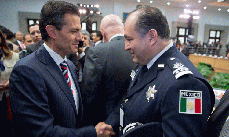 El secretario de Gobernación, Miguel Ángel Osorio Chong anunció la tarde de este lunes 29 de agosto de 2016 la separación del cargo del comisionado general de la Policía Federal, Enrique Galindo Ceballos. Su lugar será tomado por Manelich Castilla Cravioto, hasta el día de hoy, jefe de la división de Gendarmería. La salida de Galindo Ceballos se produce 11 días después del informe de la Comisión Nacional de Derechos Humanos (CNDH) en el que se señaló que agentes de la Policía Federal mataron a 22 civiles armados, alteró la escena del crimen y torturó sobrevivientes durante un operativo para detener a supuestos miembros del Cártel Jalisco Nueva Generación en el rancho Del Sol de Tanhuato Michoacán, el 22 de mayo de 2015. |