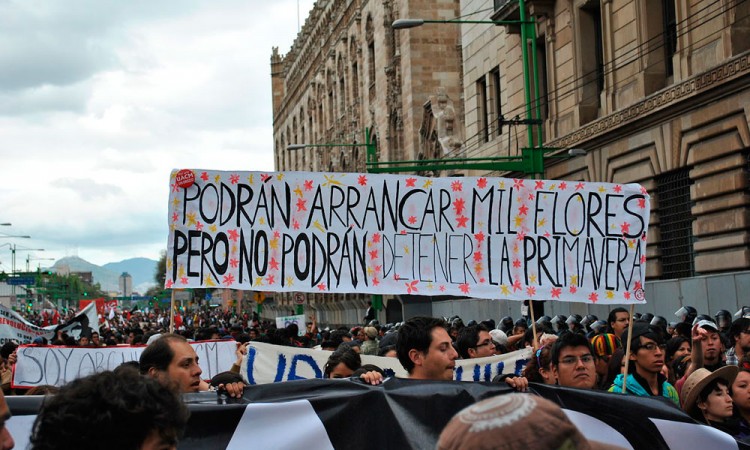 Miles de personas llegaron al Zócalo de la Ciudad de México en la marcha conmemorativa del 2 de Octubre. Los contingentes salieron de Eje Central y Ricardo Flores Magón, a la altura de la Plaza de las Tres Culturas en Tlatelolco y se incorporaron en 5 de Mayo para llegar a la plaza. Entre los contingentes, liderados por el Comité 68, destacaban el de los padres de los 43 normalistas de Ayotzinapa, los colectivos estudiantiles de la UNAM y el IPN, la Coordinadora Nacional de Trabajadores de la Educación (CNTE) y del Sindicato Mexicano de Electricistas (SME). Una vez en la Plaza de la Constitución, los marchantes encontraron una valla que impidió el acceso hacia el escenario donde ayer Roger Waters dio su concierto. Félix Hernández Gamundi, exlíder en aquel movimiento estudiantil e integrante del Comité 68 exigió que se vuelvan a abrir las investigaciones contra el expresidente Luis Echeverría (por entonces, secretario de Gobernación); además, pidió juicio contra los artífices de la agresión del 10 de junio de 1971, conocida como el halconazo. En la marcha se conmemoraron 48 años de los hechos del 2 de octubre, donde fueron asesinados cientos de jóvenes. Según reportes de la Secretaría de Gobierno de la Ciudad de México, ingresaron al Zócalo más de 7 mil personas. |