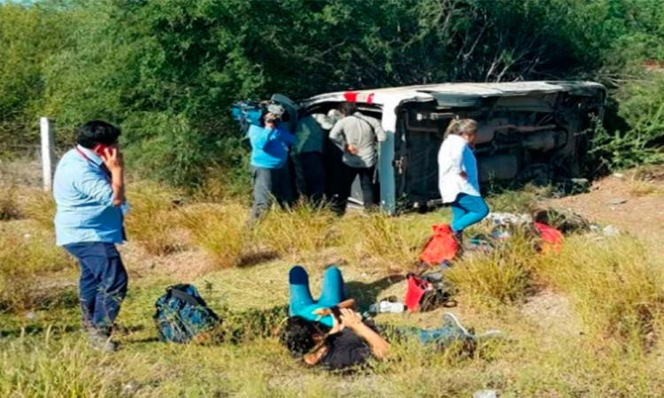 Una camioneta que trasladaba a reporteros que cubrían la gira del Presidente Andrés Manuel López Obrador se volcó cuando se dirigía a Guaymas. La camioneta llevaba a 10 personas, entre reporteros y camarógrafos. Lee: Adiós al robo hormiga, hola a ‘se te cayó tu dinero’Se volcó minutos después de salir de Etchojoa, cuando se dirigía a la comunidad de Pótam, en Guaymas. De acuerdo con los primeros reportes, presentaba fallas mecánicas desde el viernes y se solicitó que se cambiara; sin embargo, se les dijo que ya estaba en óptimas condiciones.