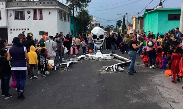 Con la llegada de temporada del Día de Muertos presuntamente vecinos de la alcaldía Tláhuac, en la Ciudad de México fueron muy creativos al tapar los baches con enormes calaveras de cartón como burla de los “enormes hoyos que hay en la calles de la ciudad”. En redes sociales se han virilizado dos imágenes en las que muestran a las calaveras tapando los baches. También puedes leer: Momia alerta bache en PueblaLa creación de estas calaveras fue de la familia Medina Jaen, pertenecientes al Colectivo Cartoneros Jaen, quienes al recorrer las calles y ver las zanjas descuidadas en las calles, decidieron crear el escenario perfecto para llamar la atención de las autoridades y de los vecinos.