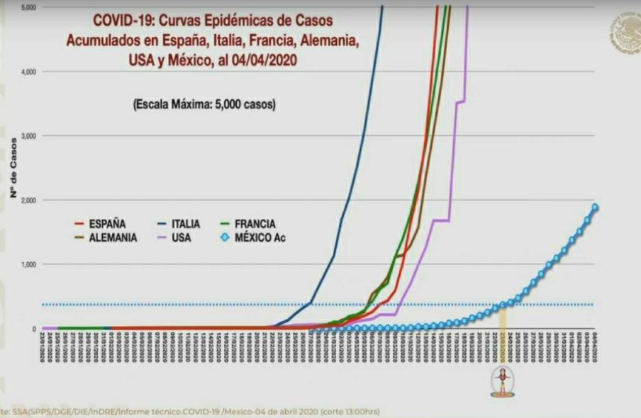 Al corte del día de hoy se confirmaron mil 890 contagios a lo largo de la república mexicana. Así lo informó el vocero de la Secretaría de Salud, el doctor Hugo López Gatell, detallando que las tres entidades con mayor número de contagios registrados son Ciudad de México con 496, Estado de México con 180 y Puebla con 125, le siguen Jalisco con 120 y Nuevo León con 88. Así mismo las entidades con mayor número de decesos confirmados son Ciudad de México (17), Sinaloa (10), Jalisco (6), Baja California e Hidalgo con cinco defunciones cada una. También lee: Puebla, tercer lugar en número de contagios de COVID-19Por otra parte López-Gatell al enseñar la curva epidémica de casos acumulados en otros países aseguró que aún no se puede asegurar que existe una velocidad reducida de propagación del virus a partir de las intervenciones de la Jornada de Sana Distancia. Sin embargó aseveró que próximamente se anunciará con análisis numéricos y concisos.