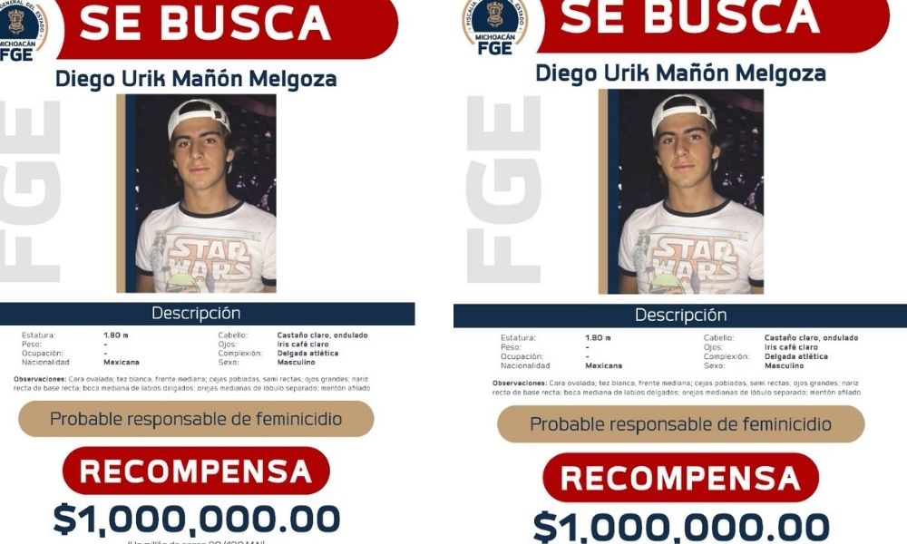 Autoridades de Michoacán ofrecen un millón de pesos a quien ofrezca información que lleve a la captura de Diego “N”, presunto feminicida de Jessica González Villaseñor. De acuerdo con la Fiscalía de la entidad, Diego tiene 18 años, mide 1.80 metros, es complexión delgada atlética y cara ovalada. Tienen el cabello castaño claro ondulado, la frente mediana, ceja poblada, ojo regular de iris café claro, nariz mediana de base recta, boca mediana de labios delgados. La intuición detalló que la información será recibida en la Agencia de Inteligencia Criminal de la Fiscalía General del Estado de Michoacán. La recompensa no será aplicable a los servidoras públicas relacionados con las instituciones policiales. Adrián López Solís, fiscal de Michoacán, informó el pasado 28 de septiembre que ya hay una orden de aprehensión liberada contra Diego ’N’. Según López Solís, las pruebas halladas por el personal de la institución a su cargo son sólidas y suficientes para inculpar a Diego “N” y determinar su responsabilidad en el crimen que llevó a la muerte a Jessica.