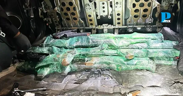 La conductora viajaba acompañada de tres menores de edad, quienes posteriormente fueron entregados a un familiar. La mujer fue detenida y enfrenta cargos federales por contrabando de mercancías (18 USC 554). El vehículo y el arsenal quedaron asegurados por las autoridades. La Embajada de Estados Unidos en México difundió el caso a través de redes sociales, donde destacó las acciones para frenar el tráfico ilegal de armas hacia el sur. El fiscal federal para el Distrito de Arizona, Timothy Courchaine, señaló que el caso forma parte de los esfuerzos para interrumpir el flujo de armamento hacia organizaciones criminales. Te puede interesar: ¿Chihuahua violó la Constitución al recibir agentes de EU? Esto dijo Sheinbaum El decomiso se suma a otras operaciones en la frontera sur de Estados Unidos, donde se realizan inspecciones de ingreso y salida para detectar contrabando. Pie de foto: Armamento asegurado por CBP en un compartimento oculto de un vehículo en el puerto fronterizo de Nogales. |