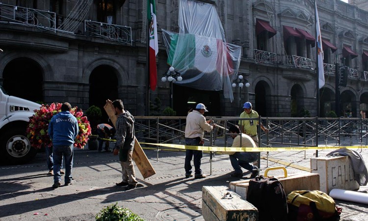 Mario Riestra Piña, en representación del alcalde de Puebla, Luis Banck Serrato, encabezó la ceremonia en el zócalo de la ciudad, donde se llevan a cabo los preparativos para los festejos nocturnos.