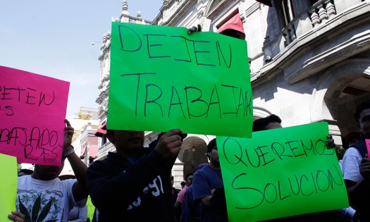 Bajo la consigna "si no hay solución nos quedamos en plantón", centenas de vendedores ambulantes, originarios tanto de la periferia de la capital como del Centro Histórico, tomaron las inmediaciones del Palacio Municipal de Puebla para comerciar sus productos y exigirle a Luis Banck Serrato, alcalde de la ciudad, una reunión para que les "devuelvan sus sitios de trabajo", luego de decirse engañados durante el retiro temporal que hicieron en el Buen Fin. El martes pasado los comerciantes informarles intentaron regresar a las calles de la 6 a la 12 Poniente; pero estaban resguardadas por un operativo de recuperación de avenidas de la Policía Municipal. Después de tres horas de negociación con la Secretaría de Gobernación Municipal, reunión que no contó con la presencia del titular de la dependencia, Juan Carlos Morales Páez, se les ofreció reubicarlos en las afueras del primer cuadro de la ciudad. Foto: Karen Rojas Mientras el movimiento se agrupaba en el Reloj del Gallito, agentes de seguridad municipal cercaban el contorno del Zócalo, pues los ambulantes amenazaron con tomarlo para comerciar su mercancía. La cita fue a las 10 horas; pero los quejosos retrasaron su salida para desayunar en los puestos de tamaleros en los alrededores. Los agentes de tránsito apreciaban la verbena en las esquinas. A las 11 horas, las movilizaciones arrancaron sobre la avenida Reforma en dirección al Zócalo, mientras recordaban que el gobierno municipal engañó a los comerciantes con prometerles que terminada la tregua de ventas de los negocios establecidos en el Buen Fin, podrían volver a las calles, por lo que la exigencia es que Banck Serrato aclare la situación. A su llegada al Palacio Municipal, los altavoces resonaban con la consiga de querer "diálogo verdadero"; porque su actividad los ayuda a no ser parte de las estadísticas de la delincuencia en la ciudad. Insinuaron que la administración municipal pretende aumentar el problema del desempleo y aseguraron que sólo se beneficia a la Cámara de Comercio, Servicios y Turismo (Canaco). Amenazaron que no se retirarían de los Portales, pues los tomarían como sus plazas de trabajo, hasta que se diera una "reubicación justa". Foto: Karen Rojas Rechazan reubicación en la 14 Poniente En entrevista, el coordinador del comercio informal de Antorcha Campesina, Francisco Machorro, dijo que después de la negociación del martes, no se ha sostenido otro acercamiento con el gobierno municipal; aunque afirmó que el trato que les ofrecieron, de reubicarlos a las calles de la 14 a la 20 Poniente, es inviable, debido a que causaría conflictos con los informales de la zona. "El gobierno se cierra las puertas de la negociación. No quiere negociar, para él y la Canaco dicen que no haya ambulantes, pero los ambulantes somos una necesidad y que el pueblo lo quiere, pero si no quieren ambulantes que nos den trabajo". Adelantó que el plan será mantener movilizaciones hasta que acepten una negociación en donde ambas partes queden satisfechos con el trato; no obstante, aseguró, que de no lograrse se mantendrán en la zona por un tiempo indefinido. Piden plan integral para el Centro Histórico Por su parte, aunque reconocen que el gobierno municipal mostró avances al implementar operativos de retiro de ambulantes del Centro Histórico al término del Buen Fin, en cámaras empresariales esperan que se considere un plan integral a futuro. Por resolverse, comentó Marco Antonio Próspri Calderón, quien preside la Cámara de Comercio, Servicio y Turismo (Canaco Servytur), está no sólo la reubicación sino la legalidad de productos. El problema en el primer cuadro de la ciudad, comentó, va más allá de en qué calles ocupan los puestos informales pues hay productos que incluso requieren la revisión de autoridades federales. Foto: Karen Rojas Por un lado, dijo, está el tema de la piratería y la mercancía obtenida de manera ilegal, que a todo formal afecta por la desventaja de precios de los establecidos frente a los formales. Pero más grave que eso, dijo el representante comerciantes, está todo lo relacionado a la venta de productos que implican daños para la salud como cigarros y alcohol sin regulación. "De origen habría que ya, de una vez por todas, no permitir ciertos productos como es piratería, artículos robados, productos que son apócrifos y que son dañinos para la salud. Se venden cigarros, se venden perfumes, se venden bebidas alcohólicas que incluso pueden provocar la muerte". El representante se refirió también al caos que se generó el martes en calles del primer cuadro de la ciudad, con motivo del operativo de elementos de la policía municipal. Si bien en esa primera jornada se registraron cierres de vialidades y se afectó tanto a visitantes como al propio comercio formal, debe considerarse que habrá conflictos temporales pero que abren la posibilidad del diálogo, mencionó. "Esto obviamente no puede ser permanente, no se puede no permitir que los vehículos transiten por el Centro Histórico, creemos que es una buena estrategia para precisamente traer a los líderes de los ambulantes y ponernos de acuerdo, que se pongan de acuerdo con la autoridad". Foto: Karen Rojas Según estimados a los que han tenido acceso las cámaras de comercio formal, refirió Prósperi Calderón, en el Centro Histórico operan unas ocho organizaciones de ambulantes y la cifra de estos está entre los mil 500 y los mil 800. Además de beneficiar a los formales, opinó, sería benéfico un proyecto integral para quienes viven en el primer cuadro de la ciudad y para impulsar museos y atractivos religiosos. Tan sólo en la parte Norponiente, la más afectada, resaltó, están los museos de lo ex conventos de Santa Mónica y Santa Rosa, el de arte José Luis Bello y González, así como los atractivos del Señor de las Maravillas y la Capilla del Rosario. El operativo de retiro de ambulantes para el Buen Fin ocurrió tras un 2015, en que