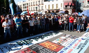 Una vez terminado el último informe de gobierno de Rafael Moreno Valle, una decena de organizaciones civiles, a través de un acto simbólico en el Zócalo de la capital poblana, mostraron cifras que distan del discurso oficial, ya que expusieron las supuestas arbitrariedades a las que fueron víctimas en el mandato del gobernador. Los preparativos para la despedida del todavía mandatario del estado iniciaron cerca de las 16 horas en la Angelópolis; asimismo, un grupo de personas se aglomeró para solicitar el encarcelamiento de Moreno Valle, pues afirmaron que al terminar su gestión dejó un estado endeudado, con daños en el tema de los derechos humanos y con la centralización de beneficios para unos cuantos. Durante el conocido como contrainforme en el Zócalo, el segundo en hacer uso del micrófono fue Eudoxio Morales Flores, académico y miembro del Observatorio de Economía y Finanzas de la facultad de Economía de la Benemérita Universidad Autónoma de Puebla (BUAP), quien documentó la deuda pública del gobernador en su obra La democratura en los tiempos de Rafael Moreno Valle. En su proceso de investigación dictaminó que la deuda pública heredada a José Antonio Gali Fayad será cercana a los 150 mil millones de pesos; de igual manera, subrayó que se tardará hasta 50 años en saldar los adeudos, siempre que se mantenga un uso moderado del presupuesto por parte de los mandatarios futuros. "(Moreno Valle) ha hecho muchos negocios por todos lados y ha creado muchos hoyos financieros en todos lados. (…) Las finanzas públicas en Puebla están completamente desfalcadas". El investigador dijo que Moreno Valle dejó protegidos sus negocios, al colocar a sus allegados en puestos clave, como el fiscal del estado Víctor Carrancá Bourget o los consejeros del Instituto de Transparencia Acceso a la Información Pública y Protección de Datos Personales del Estado de Puebla (Itaip), pues intenta evadir la cárcel. Aunado a lo anterior, Eudoxio Morales Flores opinó que las aspiraciones del gobernador de ser candidato presidencial son exageradas, cuando su grado de opacidad y corrupción se igualan a los de sus homólogos acusados por desviación de recursos como Javier Duarte Ochoa y César Duarte Jáquez; sin embargo, la mayor diferencia con ellos, es que supo disfrazar sus actos ilegales. Los grupos que se dieron cita a las manifestaciones en contra del gobernador fueron el Barzón Poblano, el Movimiento por la Alternativa Social (MAS), la Unión Popular de Vendedores Ambulantes (UPVA) 28 de Octubre y el Consejo Democrático Magisterial Poblano (CDMP), así como el Centro de Derechos Humanos "Ignacio Ellacuría" de la Universidad Iberoamericana. UPVA se queja ante la ONUA través de un comunicado, la 28 de Octubre informó que su dirigente Rita Amador López sostuvo su primer encuentro formal con Michel Forst, relator especial de la Organización de las Naciones Unidas (ONU), donde hablaron sobre la situación de las y los defensores de los derechos humanos, además expusieron la persecución que vivieron los activistas durante el sexenio. Durante la reunión la representante de los comerciantes informales expuso la privación de la libertad de expresión que sufren, pidió que los ayuden con la liberación de los presos políticos y que se cancelen los procesos de investigación interpuestos en contra de la UPVA. |