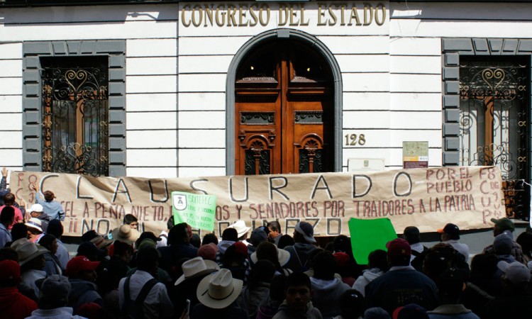 Aunque permanecieron desde las 10 horas y hasta que concluyó la sesión, no tuvieron forma de ingresar a la sede legislativa, aunado a que los diputados aprobaron que en vez de comparecer, como todos los funcionarios, el fiscal entregara un informe por escrito. Más tarde llegaron al Congreso, que ya se encontraba cubierto de inconformes, integrantes del Frente de Colonos Urbano Popular (FCUP) en protesta por el gasolinazo. El pequeño grupo hizo una clausura simbólica por la falta de decisión de los diputados por revertir el incremento en el costo de los combustibles.