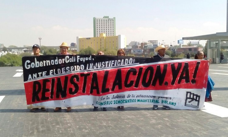 El Consejo Magisterial Poblano continuará en resistencia hasta que el gobierno del estado reinstale a los maestros que fueron cesados por oponerse a la reforma educativa. Así lo dio a conocer el dirigente del movimiento, Miguel Guerra, quien admitió que de los 40 despedidos sólo continúan en resistencia 10 maestros, en busca de obtener sus plazas nuevamente. Precisó que dos de los que continúan en resistencia ya cuentan con una orden para ser reinstalados y que sus salarios sean reembolsados. Miguel Guerra apuntó que existe la posibilidad de que en esta administración estatal se reinstale a los cesados desde 2012 por oponerse a la prueba Enlace. |