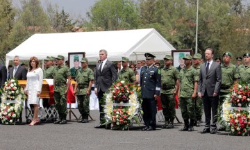 Con homenaje póstumo en la 25 Zona Militar, en las instalaciones del Sexto Regimiento, fueron despedidos con honores los cuatro militares que perdieron la vida en cumplimiento del deber, en el enfrentamiento suscitado en Palmarito Tochapan el pasado miércoles por la noche. Los militares caídos fueron: el cabo Rolando Martínez Hernández, originario del estado de Veracruz; el soldado de la Policía Militar Máximo May Hernández, oriundo de Tabasco; el soldado de infantería José Manuel Lurumbe Rayón, originario de Guerrero; y el soldado de infantería Miguel Vázquez Álvaro, quien será llevado a su natal Chiapas. El evento en su honor estuvo encabezado por el comandante de la Sexta Región Militar, Juan Manuel Rico Gámez y el gobernador del estado José Antonio Gali Fayad, también estuvieron presentes el alcalde poblano Luis Bank Serrato, la senadora Patricia Leal y otros funcionarios del gabinete del estado de Puebla, así como los familiares de los cuatro militares acaecidos. El homenaje inició rindiendo con honores a la bandera. Después, Rico Gámez emitió su mensaje en el que a nombre del presidente Enrique Peña Nieto y del secretario de la Defensa Nacional, Salvador Cienfuegos Zepeda, dio un sincero pésame a las familias de los militares que perdieron la vida. "Este cobarde y vil ataque realizado por miembros de la delincuencia organizada, al utilizar mujeres y niños como escudo, no sólo representa una agresión en contra de las fuerzas armadas, sino también una afrenta a la sociedad mexicana y deja de manifiesto el ejemplar sacrificio de nuestros compañeros de armas, que a pesar de haber tenido la oportunidad de responder de manera contundente a la artera agresión, en esos momentos cruciales decidieron el sacrificio propio a costa de respetar la integridad y las vidas de las personas civiles, manipuladas de forma irresponsable por estos delincuentes -los huachicoleros-", manifestó el comandante de la sexta Región Militar. El comandante invitó a la población a no dejarse llevar en ningún momento por el camino de la ilegalidad y por la vorágine de la violencia que provoca la delincuencia organizada, que en nada abona a la paz y la concordia que desean los mexicanos. Rico Gámez aceptó que se sienten profundamente indignados y conmovidos por la pérdida de sus compañeros de armas pero aseguró que esas circunstancias "jamás nos intimidarán, por el contrario, nos unen y fortalecen a todos los integrantes de las fuerzas armadas". "No dudaré en aplicar el legítimo uso de la fuerza"El mandatario poblano acudió a dar el pésame a los familiares de los militares, a quienes reconoció su valor y heroísmo, así como su compromiso con la nación. Aseguró a las familias que se hará justicia y se dará con todos los responsables con la aplicación de la ley. Afirmó que las autoridades tienen el compromiso de acompañarlos hasta el último momento, El Ejecutivo estatal aceptó que "es un día difícil para el gobierno y para la población del estado". Reconoció el sacrificio de los militares al ofrendar su vida al servicio de la sociedad. Enfatizó que las autoridades estatales y federales se comprometen a que este crimen no quede impune. Afirmó que los soldados que ofrendaron su vida serán recordados por la historia y estarán en los corazones de las y los poblanos y de todos los mexicanos. "Hoy reitero lo dicho en mi toma de protesta. Entiendo muy bien que corresponde al gobierno el uso legítimo de la fuerza y no dudaré en coordinarme con los distintos niveles de gobierno para aplicarla cuando los delincuentes pretendan socavar nuestra paz, nuestra integridad, nuestros valores, a nuestras familias. Nadie estará por encima de la ley. Habrá mano firme, no me temblará la misma para darles seguridad y tranquilidad a todos los habitantes de nuestro estado. No podemos perder un solo minuto, Puebla nos necesita a todos", resaltó. Además, exhortó a los poblanos a reconstruir el tejido social, valorar la dignidad humana y la vida. Y recordó que el deber de un gobernador es "salvaguardar la paz y la tranquilidad en su estado, el deber de un servidor es salvaguardar por sus familias, las familias que hoy están sufriendo la pérdida de cuatro hermanos nuestros, a esas familias les reitero que esto no se va a quedar impune". La ceremoniaDespués de los honores al lábaro patrio y del discurso del comandante de la Sexta Región Militar y el gobernador, se efectuó un disparo de salva en honor de los caídos. Después, los funcionarios militares y civiles montaron guardia de honor. Luego, se entregaron cuatro banderas de México y cuatro cartas de condolencias a los familiares. Siguió el protocolo de la ceremonia al entonarse el himno nacional y después de despidió al lábaro patrio. Por último, los féretros fueron llevados en medio de aplausos de sus compañeros, superiores y familiares, hasta las carrozas que los llevarían al aeropuerto para después ser trasladados a sus estados de origen.