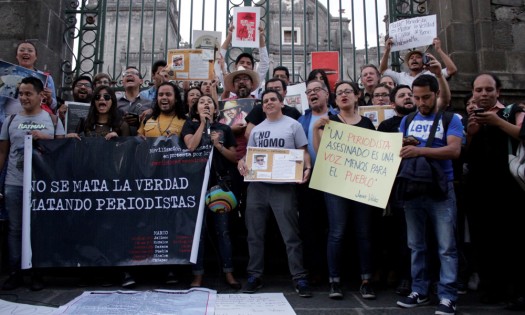 Decenas de comunicadores poblanos llegaron la entrada de la Catedral, donde manifestaron su inconformidad ante los asesinatos de siete periodistas en lo que va del año, por lo que exigieron que los tres órdenes de gobierno garanticen la seguridad en su profesión. En el mitin, organizado en la entrada principal del templo, comunicadores y activistas se dieron cita para recordar que México es hoy por hoy en el país más inseguro del continente americano y en el que más se acosa al gremio periodístico por realizar su trabajo. Al atardecer, los periodistas levantaron diversas lonas con el recordatorio de que poseer "información incomoda" podría costar la vida, sumado a la impunidad y anomalías que rodean a los homicidas de los comunicadores, pues pareciera que su vida quedó en el olvido hasta que llegue una sentencia. "Aún no sabemos por qué lo elegimos (a la Catedral), para protestar en contra de la violencia contra nuestro gremio y muy particularmente los asesinatos de compañeros, a lo largo y ancho del territorio mexicano; por desgracia, también es más frecuente que nos encontremos aquí", mencionó uno de los inconformes. Fotos: Karen RojasLos compañeros de diversos medios de comunicación denunciaron que, antes de la reunión, se les acercaron agentes de seguridad cercanos al zócalo, quienes les pidieron sus datos para poder tomar la calle, lo cual los intimidó y los motivó a llamar a la gente que caminaba a unirse a su causa. Durante el discurso recordaron los homicidios de Javier Valdez Cárdenas, fundador del semanario Ríodoce, especializado en temas del narcotráfico, y la muerte del reportero Jonathan Rodríguez Córdova del semanario El Costeño de Autlán, Jalisco, ambos acaecidos el pasado 15 de mayo. El colectivo de periodistas poblanos recordó que las muertes de sus colegas no son un tema exclusivo de ciudades con presencia del crimen organizado, sino que también se presentan en estados como Puebla; tal fue el caso de Aurelio Campos, a quien asesinaron en septiembre de 2016. "No quisiéramos volver a este lugar jamás y menos en esta calidad de un gremio asediado, asolado por la violencia, sin garantías para ejercer un oficio que no nos pertenece, es un oficio que le pertenece a la sociedad, porque nuestra vocación y nuestro postulado es informar", expresaron. Destacaron que su mayor interés es que los tres órdenes de gobierno presten mayor atención y ejerzan acciones reales a las condiciones inseguras en que las que laboran al compararlas con la violencia de países del medio oriente. Como solución, propusieron que se consolide una Comisión Internacional de Asesoría Técnica con el fin de atajar la impunidad; por ello, también exigieron autonomía del organismo para defender a periodistas, lo cual iría desde la elección de su titular hasta un presupuesto justo para su operatividad. |