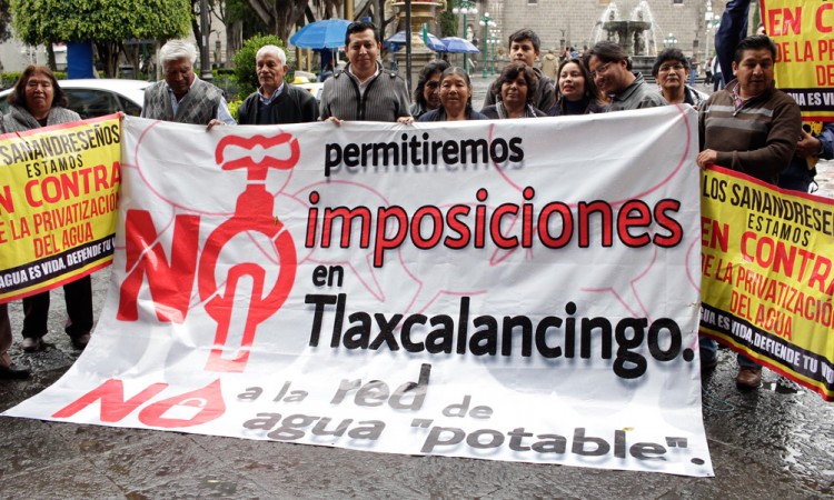 Mientras que en los últimos meses, en la cabecera municipal de San Andrés Cholula, la dependencia federal también ha intentado clausurar los pozos para que todos los ciudadanos paguen el servicio de agua potable, que va desde los 500 pesos mensuales. Ya que tanto en la junta auxiliar de Tlaxcalancingo, como en la cabecera de San Andrés Cholula, la autoridad ha intentado obligar a los ciudadanos a pagar el servicio que otorga Agua de Puebla, ambas comunidades se han unido para interponer las acciones legales; los vecinos de la zona informaron que de los seis amparos tramitados ya se han otorgado tres suspensiones definitivas. En su momento, Xóchitl Formacio, representante del movimiento Cholula Viva y Digna, explicó que desde hace varios meses promovió un amparo porque le llegaron recibos de Agua de Puebla por la cantidad de 139 mil pesos sin tener contrato alguno o toma de agua, ya que su fuente de abastecimiento es el pozo. "Pedimos que se ampare nuestro pozo porque al final de ahí obtenemos el agua, es un derecho humano, no es una mercancía y el juez nos otorga la suspensión donde le dice a Conagua que se abstenga de ejecutar la clausura temporal del pozo, pero nos siguen amenazando porque existe la alerta de que quieran llegar a clausurar los pozos para que todos paguemos el servicio de Agua de Puebla", indicó. Por otra parte, Juan Carlos Flores, asesor legal del movimiento, sostuvo que de clausurar los "pozos noria" que abastecen de agua a la comunidad, serían afectadas hasta 30 mil viviendas que tendrían que pagar el servicio de agua potable de la concesionaria, aunque de forma previa se les había informado que no era obligatorio conectarse a la red que opera la empresa. Explicó que los ciudadanos también exigen la derogación de los artículos 44 y 45 de la Ley de Agua, en donde se expresa que cuando exista red de agua potable todos los ciudadanos deben conectarse para acceder al servicio público; sin embargo, la Constitución prevé que no se pueden retirar los recursos naturales a los pueblos originarios. |