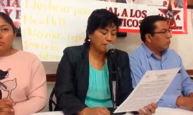 Unión Popular de Vendedores y Ambulantes "28 de Octubre" denunció que desde febrero del 2014 el Gobierno está tratando de destruir su organización para que no pueda luchar por sus derechos y demandas como vendedores particulares. En conferencia de prensa, explicaron que les han inventado delitos tratando de criminalizarlos, y desde la muerte de Meztli Sarabia Reyna, han iniciado "una guerra sucia". Desde su óptica, los nulos avances en la investigación de Meztli y las constantes amenazas a sus miembros es un claro ejemplo de la injusticia poblana. Piden a Diodoro Carrasco Altamirano, secretario general de gobierno, una reunión para dialogar y avanzar en la solución de sus demandas. En dicha petición encabeza la justicia para Meztli Sarabia, libertad inmediata a todos los presos y procesados políticos, así como el cese definitivo a la represión oficial y extra oficial que ha tenido toda la familia. Rita Amador, vocera del grupo 28 de Octubre, anunció plantones y marchas en los próximos meses.