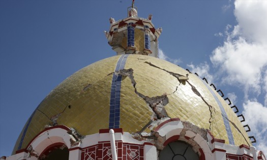 "De las tres iglesias, la principal que presenta daños más severos es esta de San Gregorio Atzompan que todo se puede rescatar, pero lo que está en duda es la cúpula, la que está sobre el ciprés, precisamente, aparte de que está más alto, los daños son más grandes, pues las grietas son severas y causaron mucho daño", mencionó.