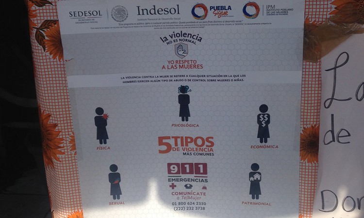 Es a través del envoltorio de tortillas como se promueve la concientización hacia la violencia de género, esto como parte de la campaña "La violencia no es normal, ponte a salvo" que arrancó el Instituto Poblano de las Mujeres (IPM) en 174 tortillerías de los municipios de Puebla, Huauchinango, Tehuacán, San Pedro Cholula, Zacatlán, Atlixco, Xicotepec y San Andrés Cholula, los cuales fueron elegidos por presentar un grado significativo de violencia hacia las mujeres. Si bien estos municipios integran un alto nivel de casos de violencia de género, existe otro bloque de municipios que no forma parte de la campaña pese a que el Centro Estatal de Datos Información referente a casos de Violencia contra la Mujeres (Ceda), que integró el propio gobierno del estado como una de las recomendaciones emitidas por la Comisión Nacional para Prevenir y Erradicar la Violencia contra las Mujeres (Conavim), advierte de la violencia. En septiembre de este año, El Popular, diario imparcial de Puebla, detectó que hay municipios que registraron considerables casos de violencia hacia la mujer y no están en el programa lanzado por el IPM, entre estos: