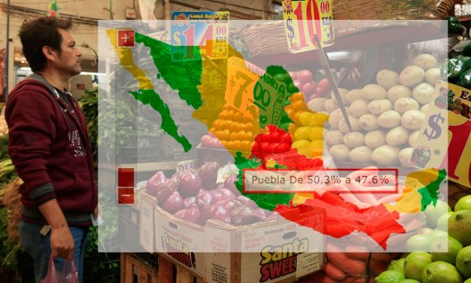 Cinco de cada 10 poblanos con trabajo no pudieron solventar con sus sueldos la compra de la canasta básica durante el año pasado, lo cual ubicó a la entidad poblana entre los nueve estados con los indicadores más negativos a nivel nacional, según se constató en el último reporte de la organización "México ¿Cómo Vamos?" Los datos tanto de académicos como investigadores especializados en finanzas, fueron resultado de la información difundida por las dependencias gubernamentales, con lo que estimaron las condiciones económicas en el territorio nacional. Sólo en las mediciones hechas para Pobreza Laboral, utilizaron la información disponible del Instituto Nacional de Estadística y Geografía (Inegi) y el Consejo Nacional de Evaluación de la Política de Desarrollo Social (Coneval), que arrojaron que el año pasado Puebla mostró mejoras en su acceso a la canasta básica. Durante el periodo de octubre y diciembre del año pasado, la entidad poblana cerró con casi el 48 por ciento de sus trabajadores en activo, a los que sus ingresos no lograron ser suficientes para comprar los alimentos básicos en sus hogares; aunque, se convirtió en su mejor indicador, desde el 2010. Los resultados que logró la entidad poblana durante octubre y diciembre del año pasado ameritaron una luz roja en su desempeño, pues contaron con casi el 48 por ciento de su población sin acceso a la alimentación básica, cuando en el mismo periodo las estimaciones debieron reducirse al 41 por ciento.